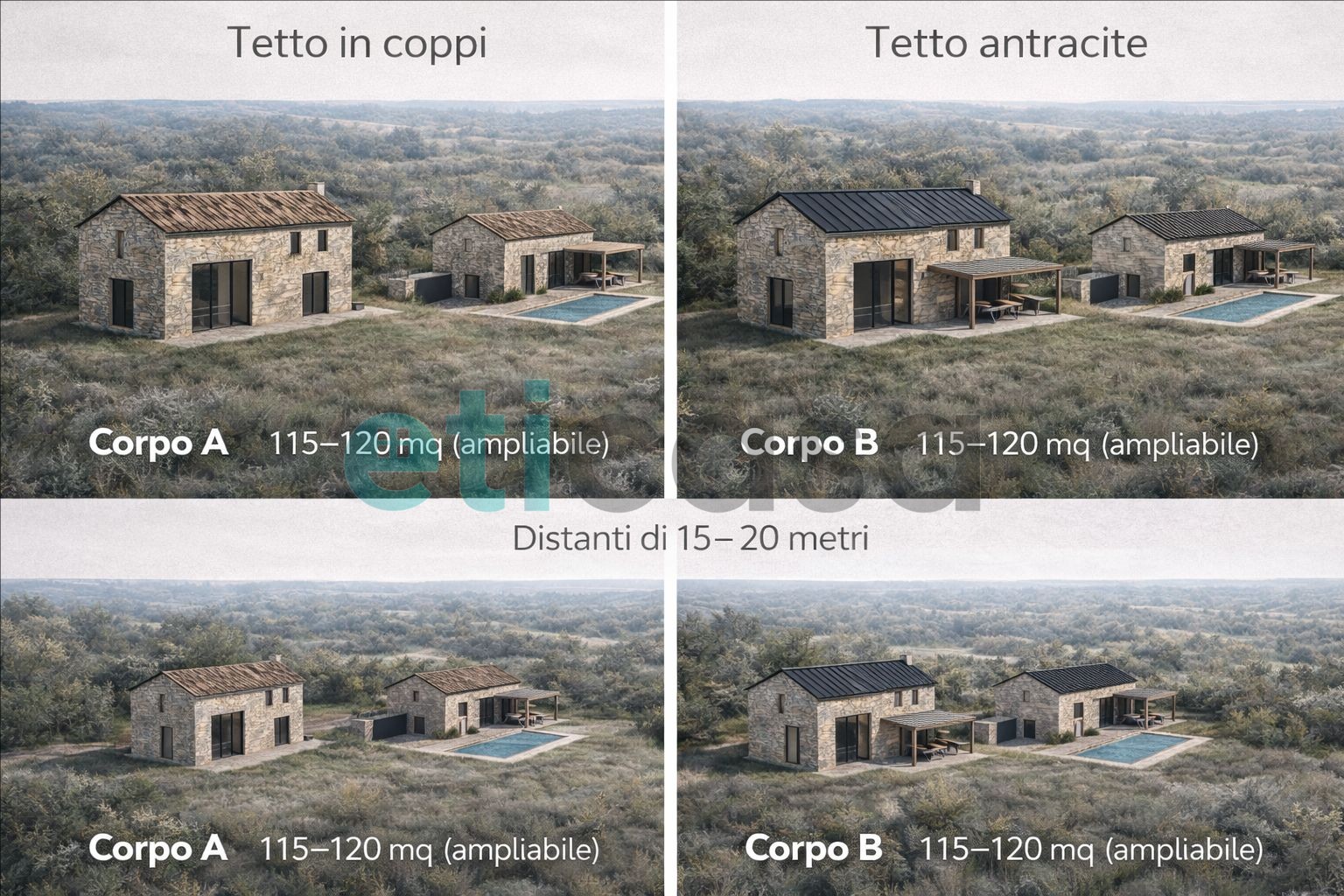 Il progetto prevede la possibilità di personalizzazione degli spazi interni e delle finiture, per creare una casa su misura, immersa nella natura ma pronta da vivere. Tempi di consegna da definire.
