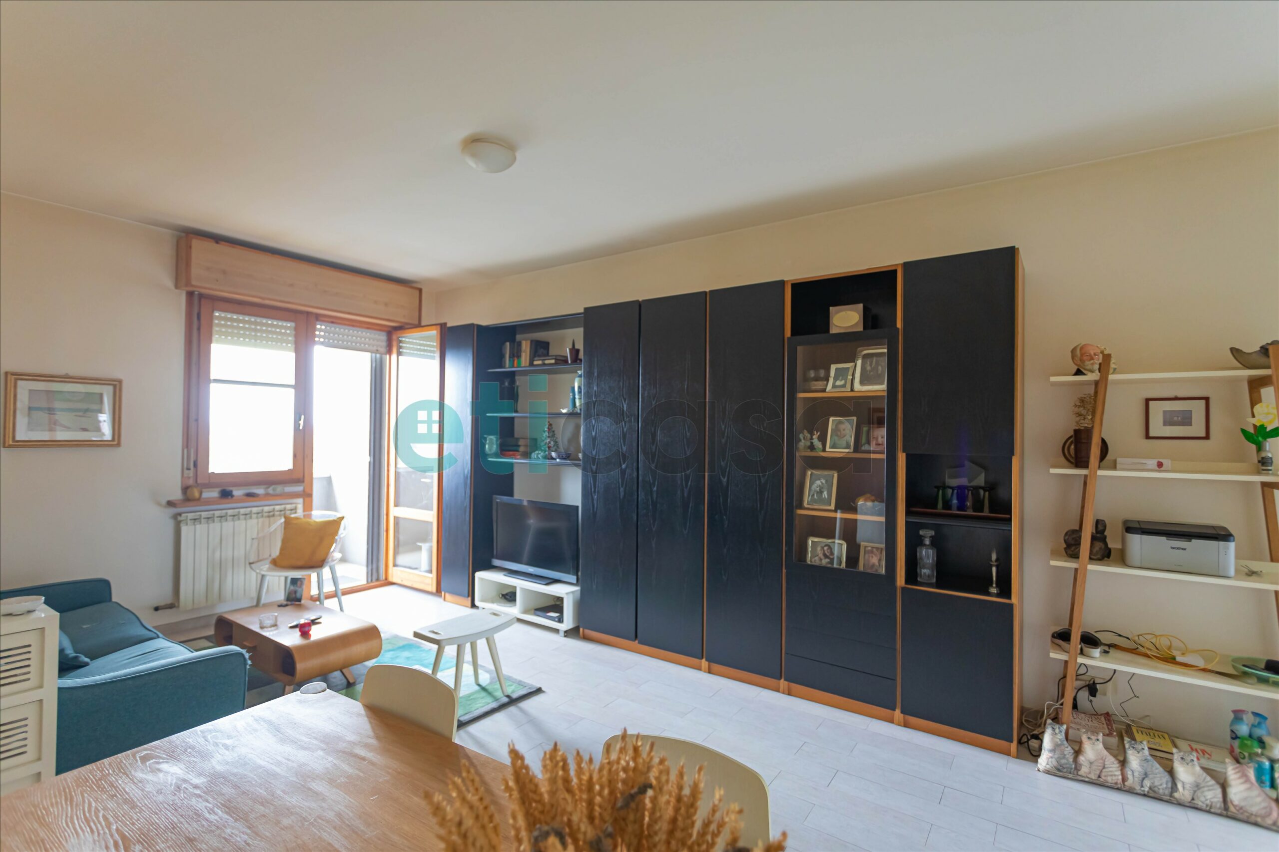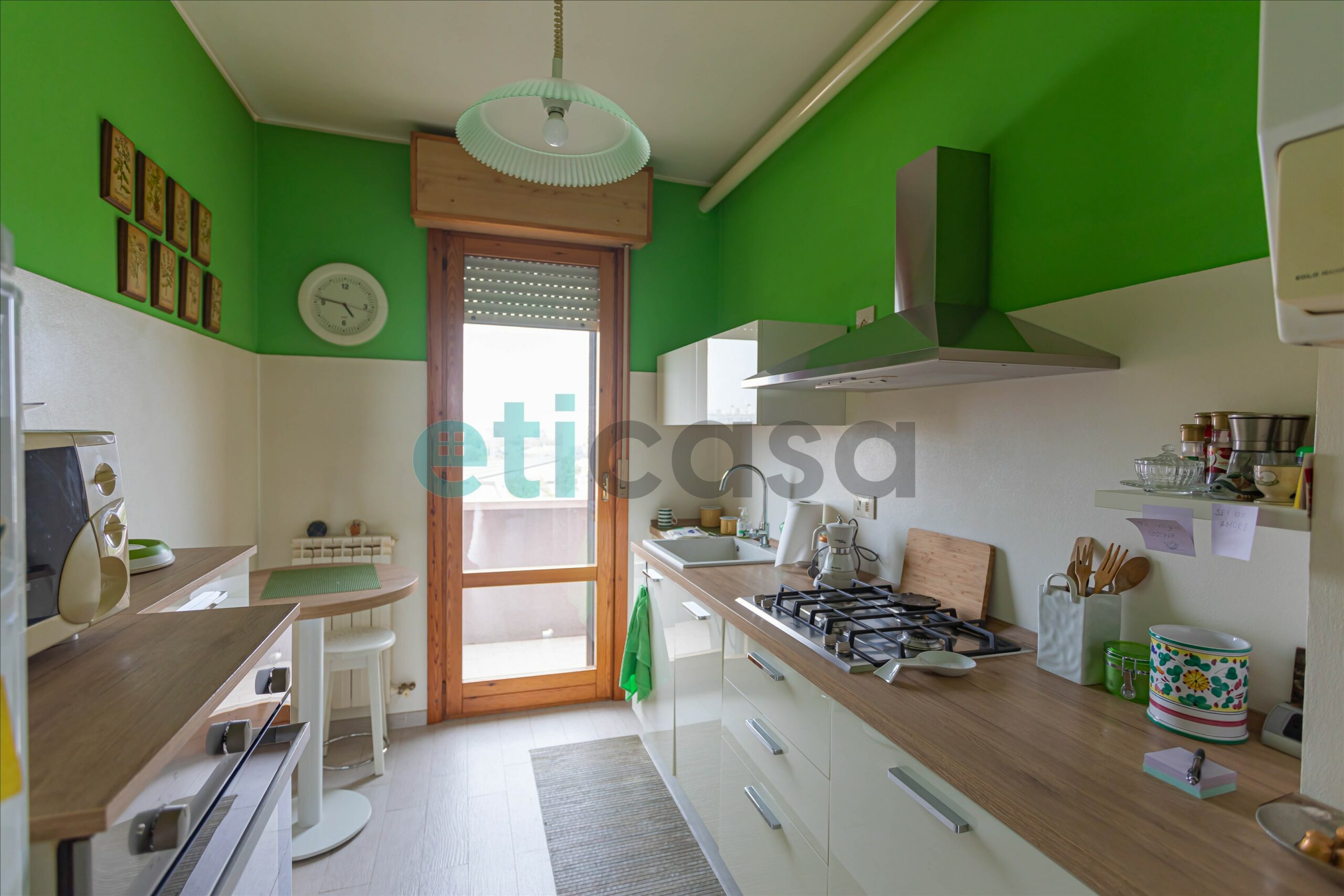 L’ingresso si apre su un soggiorno ampio e luminoso con accesso al balcone, perfetto per momenti di relax. La cucina abitabile, con secondo balcone, è spaziosa e funzionale.