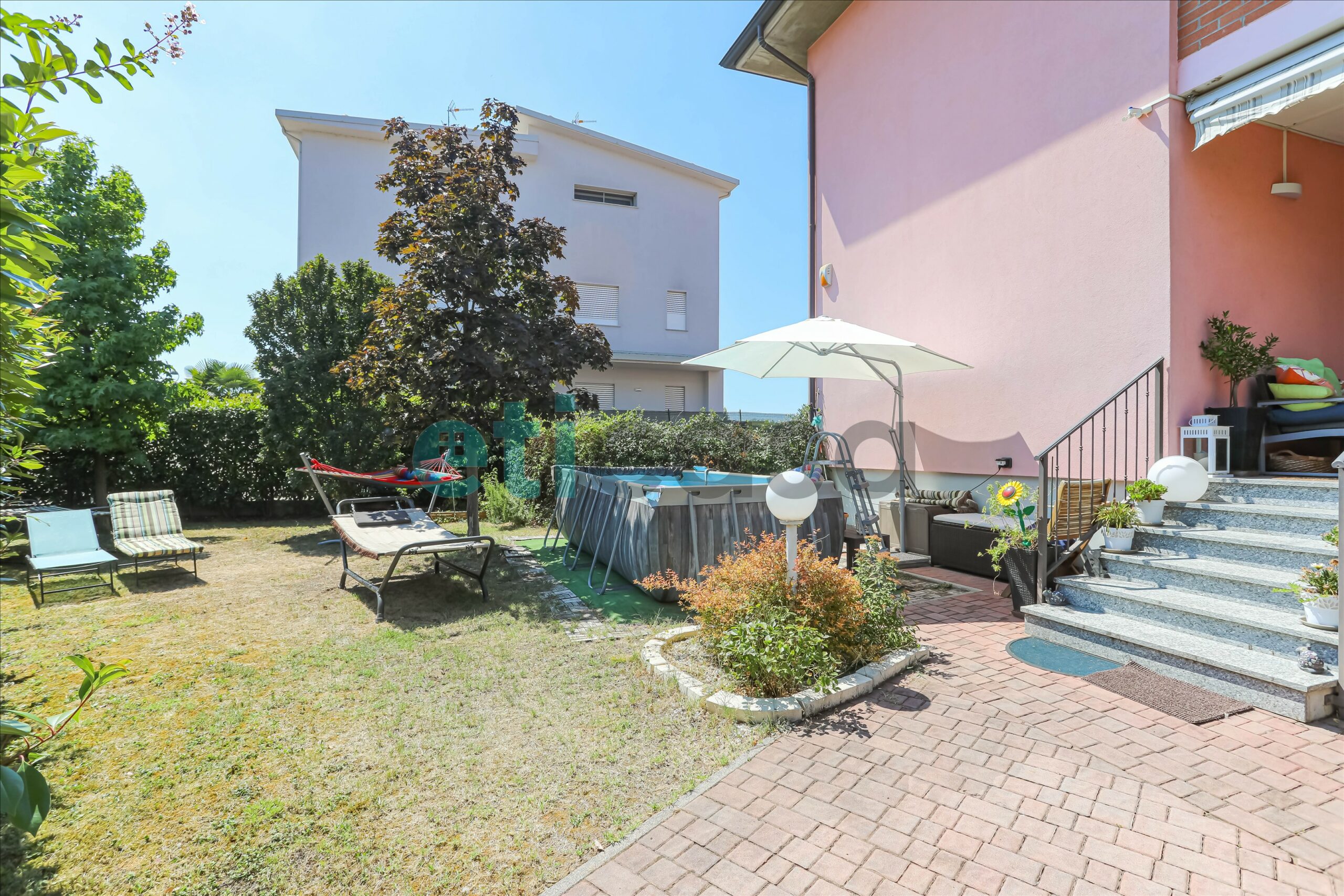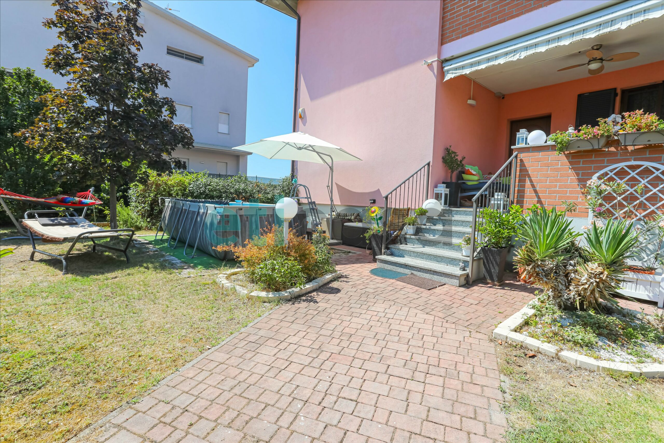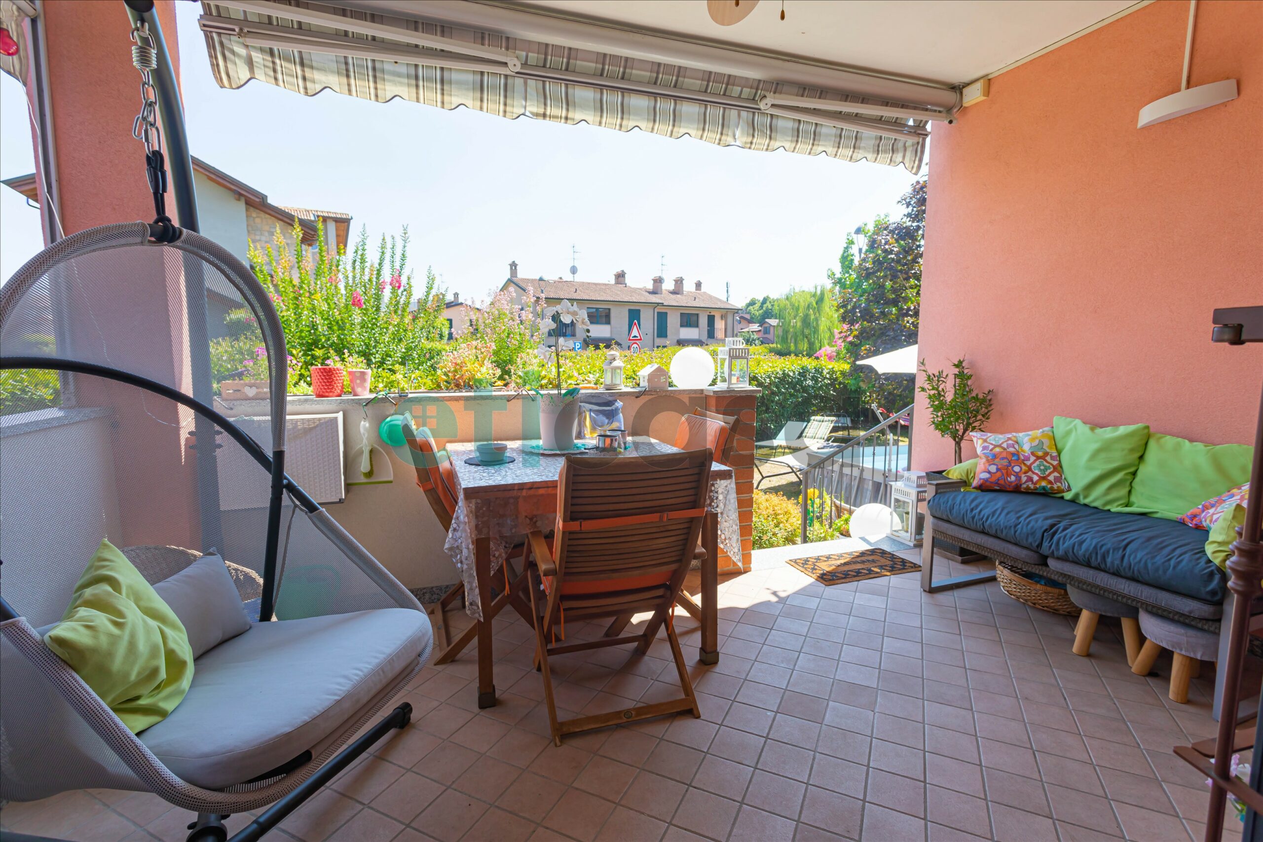 Ad accoglierci un meraviglioso giardino privato di circa 180 mq con annesso portico verandato, ideale per chi ama i pranzi all’aria aperta, le cene in compagnia o semplicemente rilassarsi. Tende da sole motorizzate e zanzariere ovunque garantiscono comfort in ogni stagione.