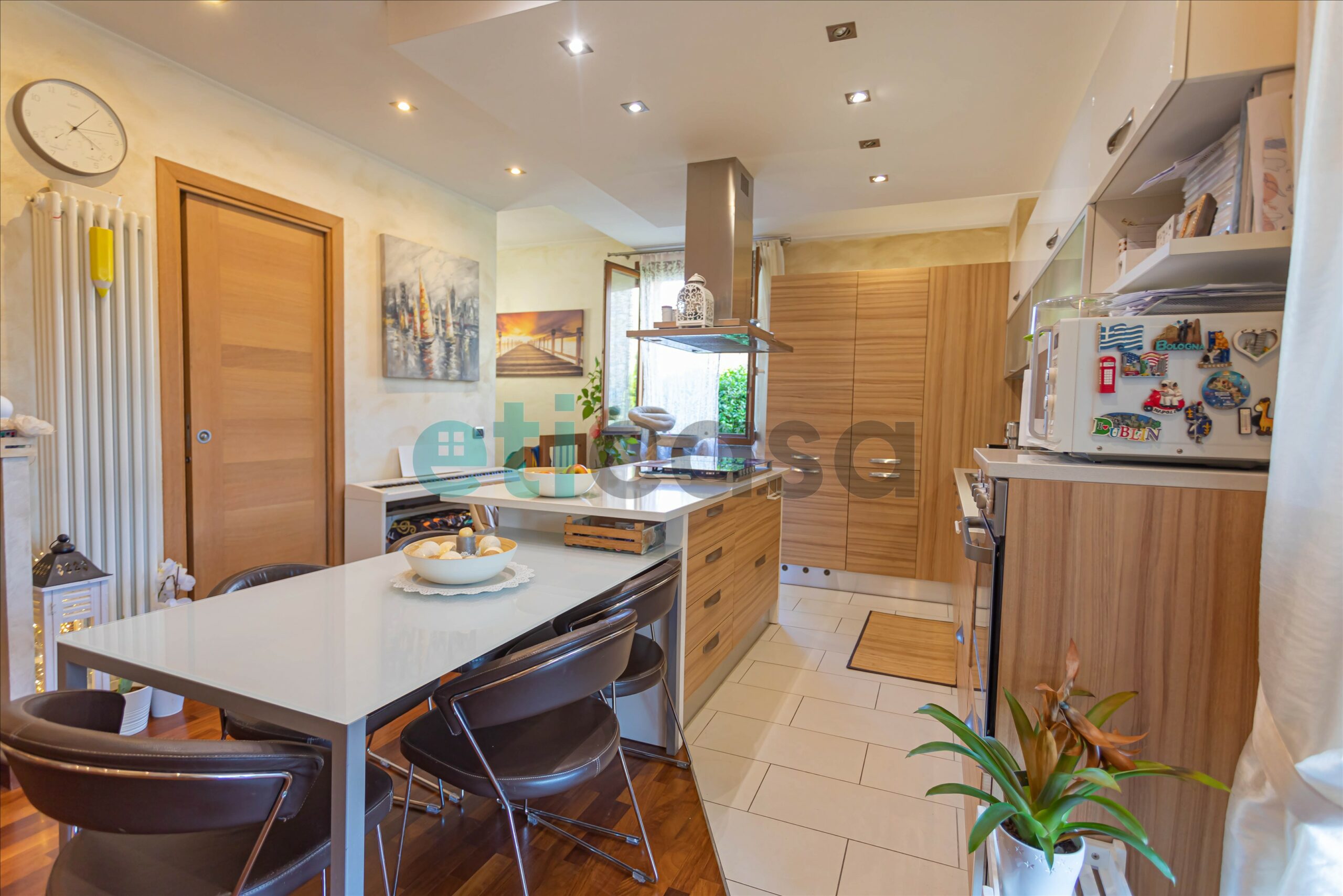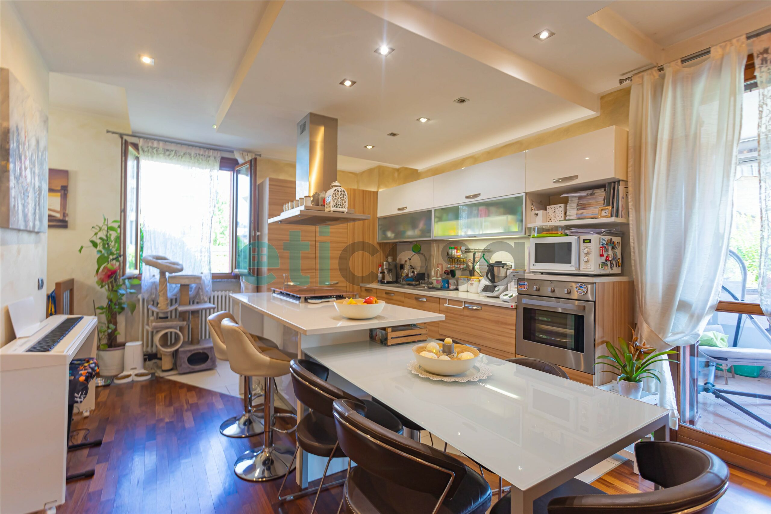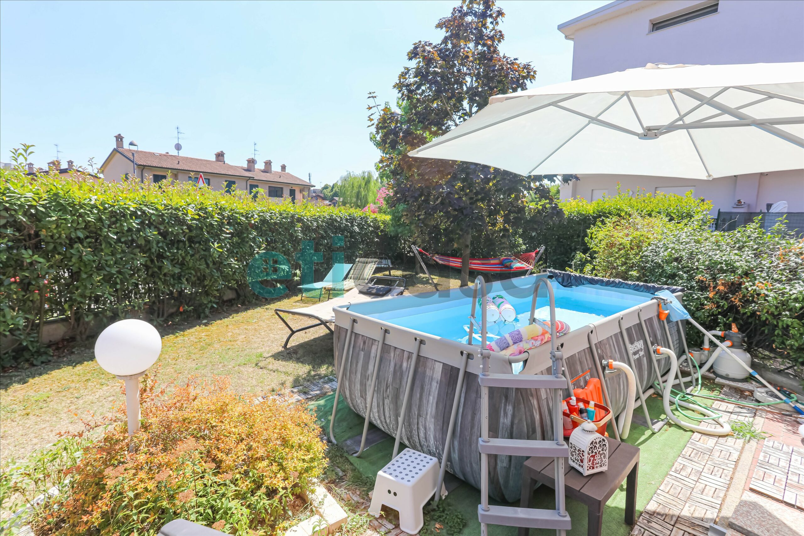 Ad accoglierci un meraviglioso giardino privato di circa 180 mq con annesso portico verandato, ideale per chi ama i pranzi all’aria aperta, le cene in compagnia o semplicemente rilassarsi. Tende da sole motorizzate e zanzariere ovunque garantiscono comfort in ogni stagione.