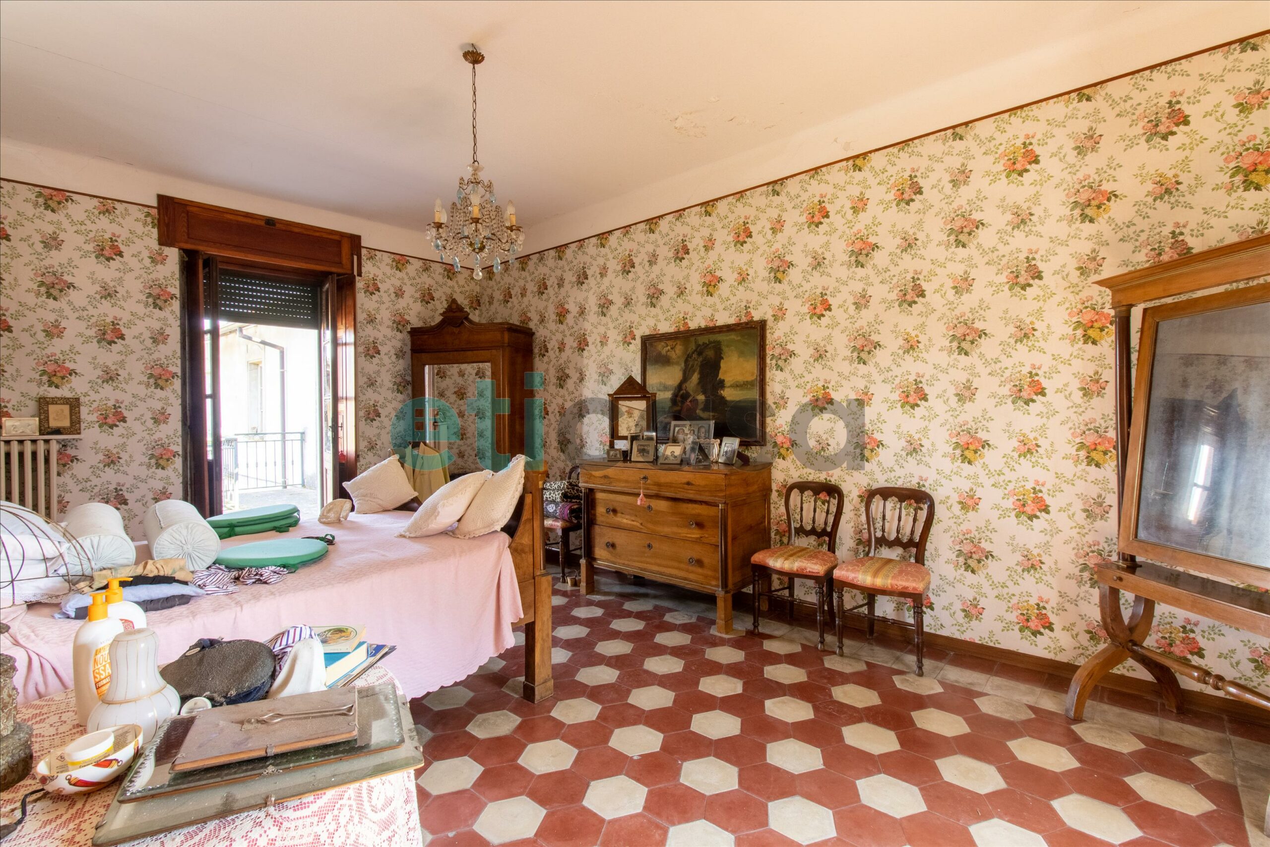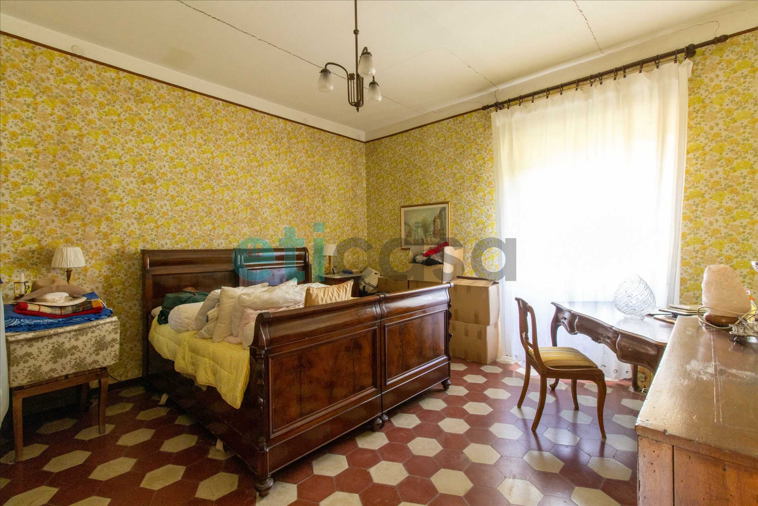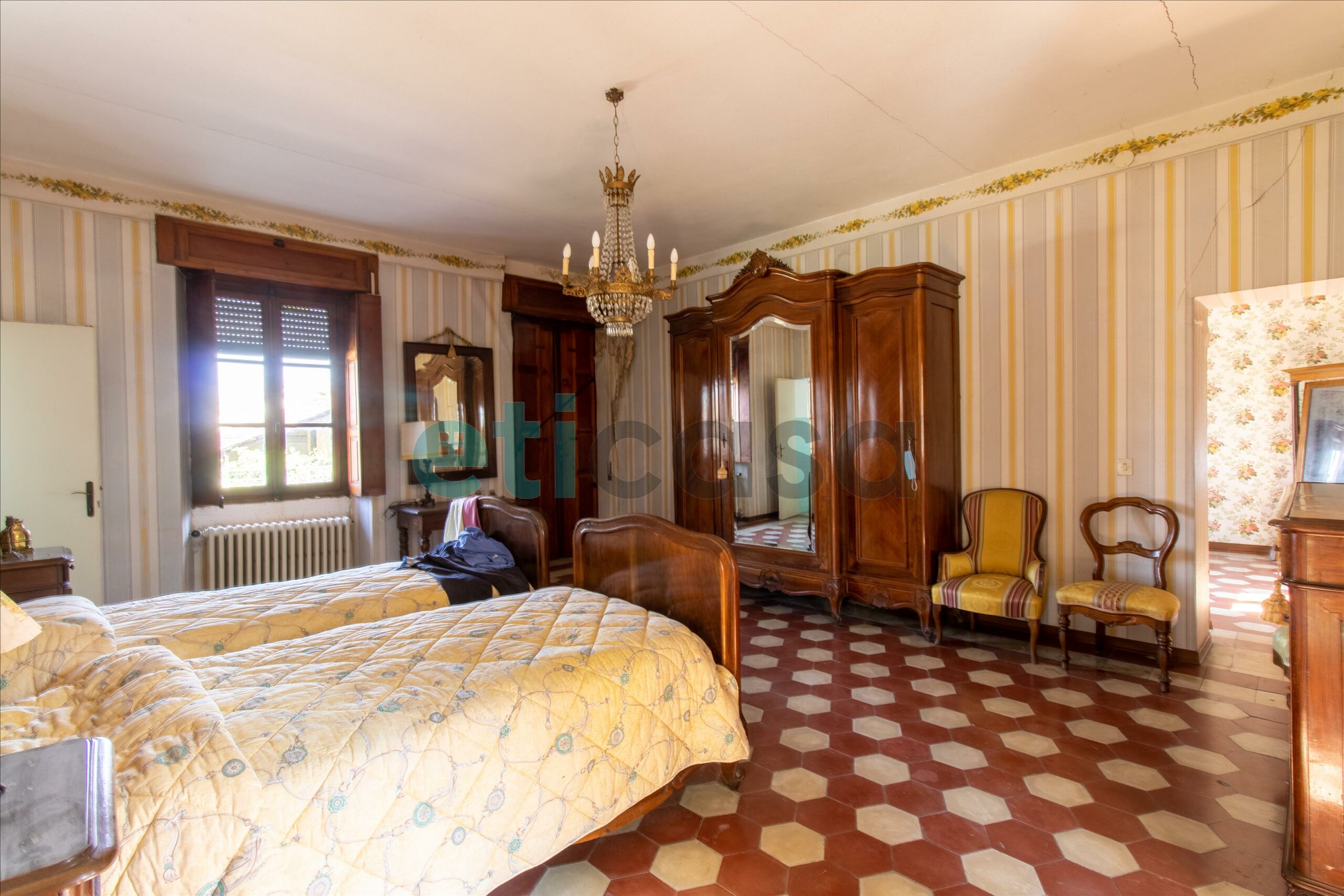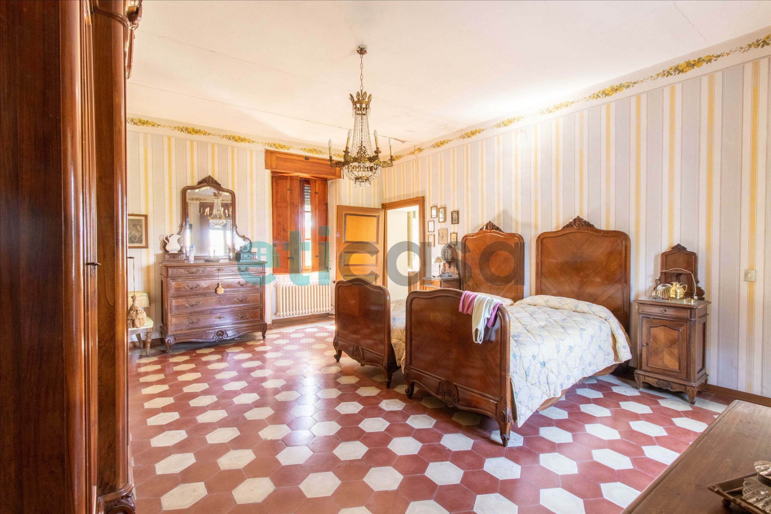 Al primo piano troviamo le quattro camere matrimoniali, gli altri due bagni e la terrazza.