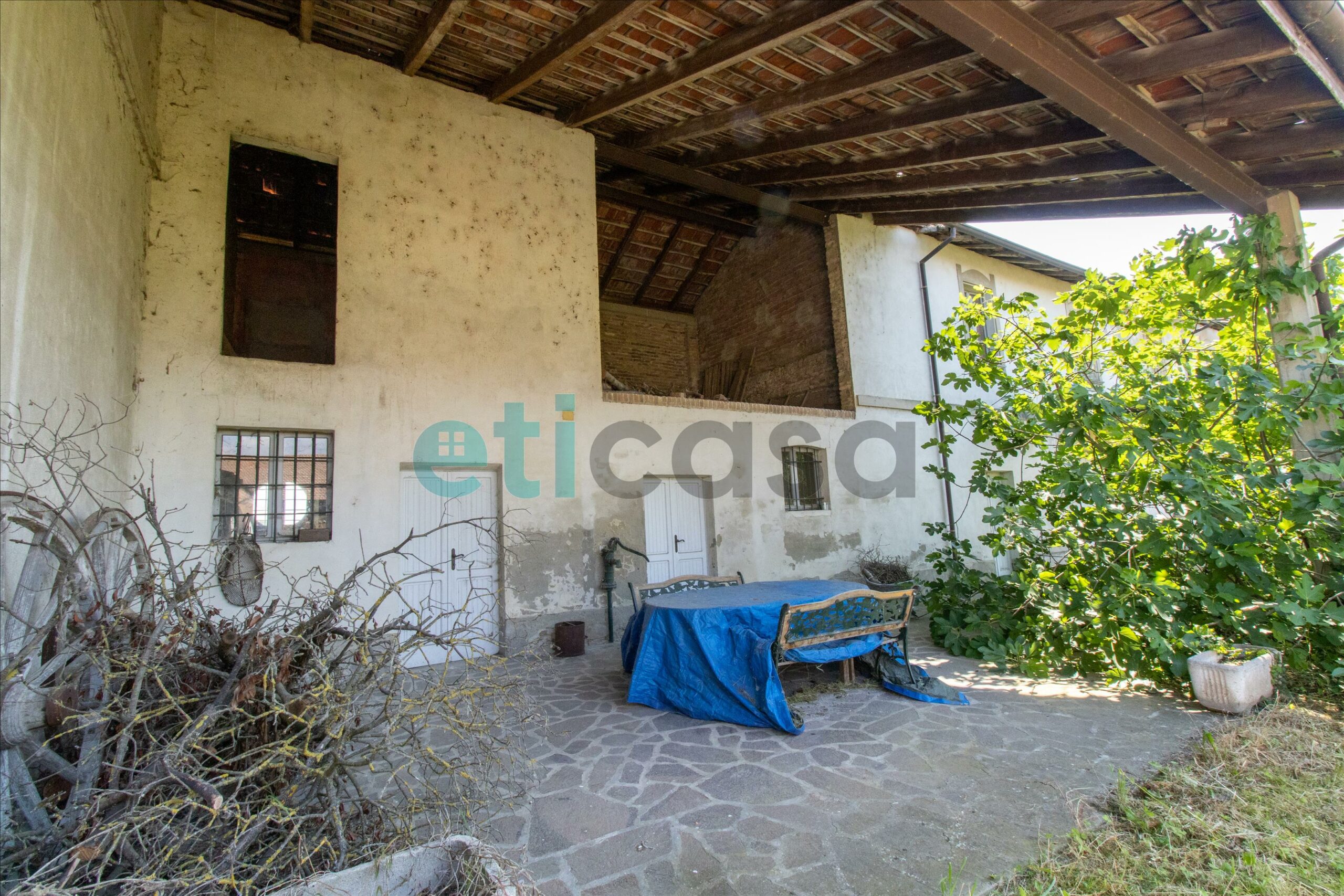 La residenza principale vanta un portico incantevole, che accoglie gli ospiti con il suo fascino rustico e si presenta come il luogo ideale per trascorrere piacevoli momenti all'aria aperta. Il terrazzo, situato al piano superiore, offre una vista panoramica sul giardino di ingresso, creando l'atmosfera perfetta per serate romantiche o per gustare un caffè al mattino.