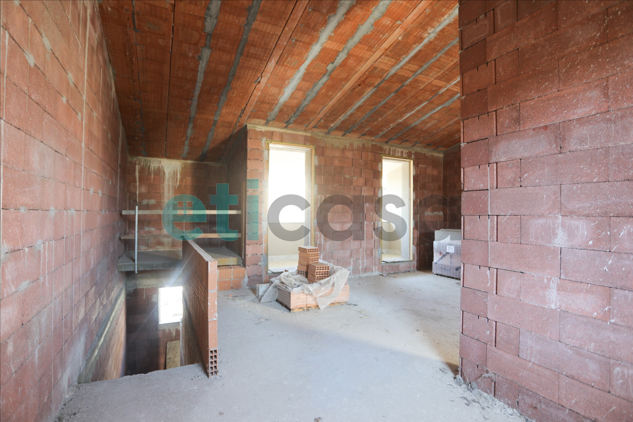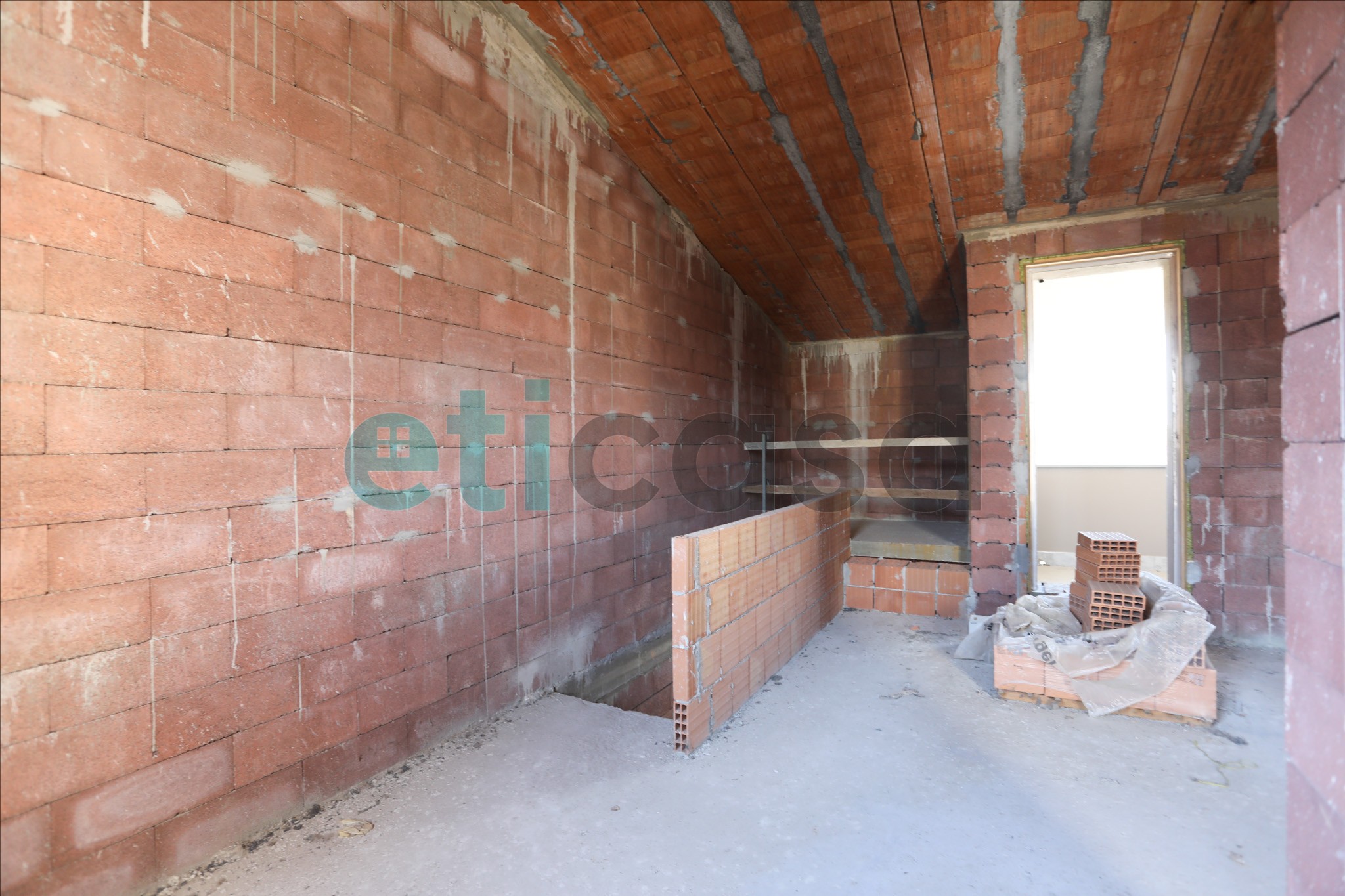 Salendo per la scala interna privata troviamo la zona giorno con un importante zona living, su cui affaccia una ampia cucina a vista con balcone ed un primo bagno finestrato.